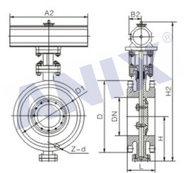 2、是金屬對金屬線密封蝶閥,蝶板密封面采用堆焊不銹鋼或堆焊硬質合金,密封面耐磨損,使用壽命長。
